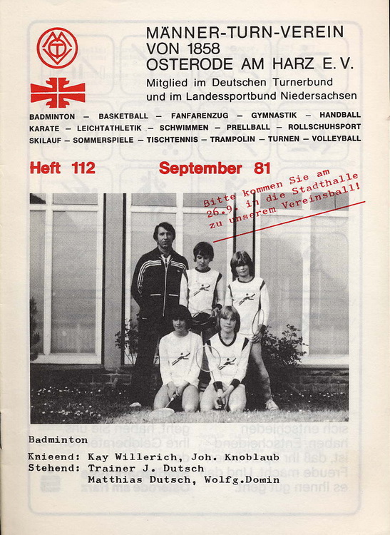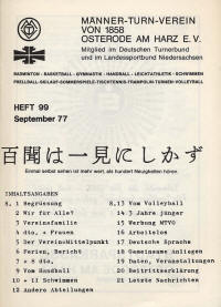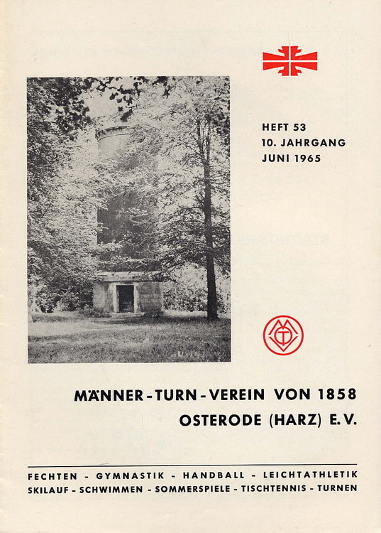 - Holzapfel, Gustav u.a.: Festschrift zum 100jährigen Bestehen des Männer-Turn-Verein von 1858 Osterode / Harz am 31.Mai und 1.Juni 1958 ; Stürmann, Osterode; 50 S. 1958;