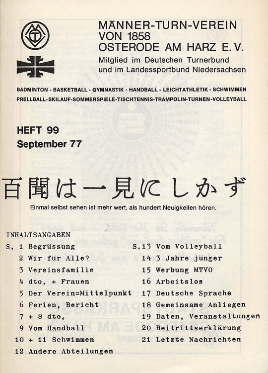 - 110 Jahre Männer-Turn-Verein von 1858 Osterode (Harz) e.V. 1859-1968; 1968; 38 S.
