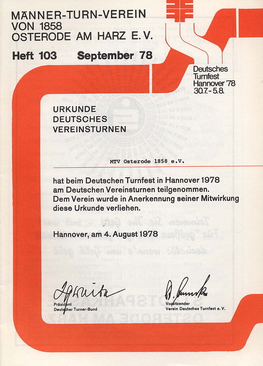 - 120 Jahre Männer-Turn-Verein von 1858 Osterode am Harz e.V. 1859-1978; 1978; o.S.
