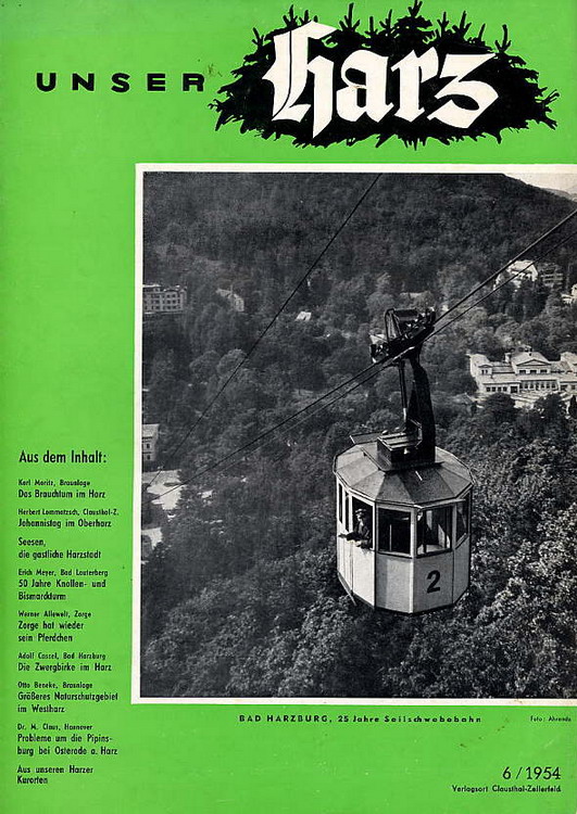 Ahrens, Herbert | Titelbild: Bad Harzburg, 25 Jahre Seilschwebebahn | Link | 1954/06, S.1 |