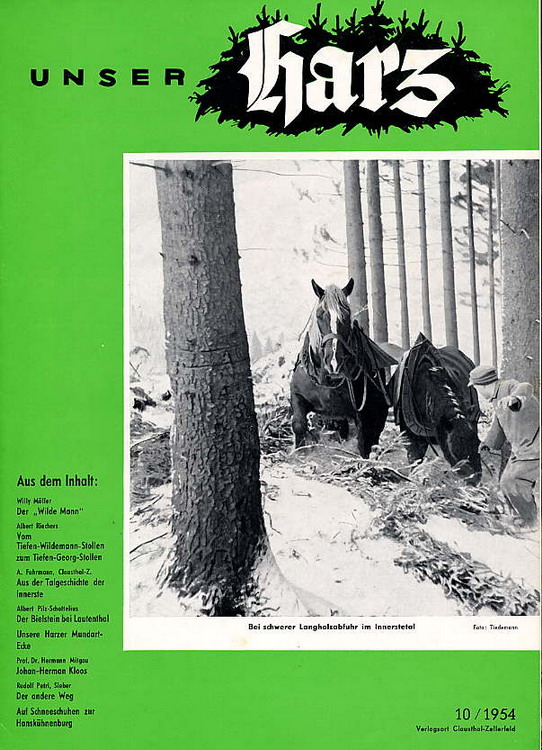 Tiedemann | Titelbild: Bei schwerer Langholzabfuhr im Innersttal | Link | 1954/10, S.1 |