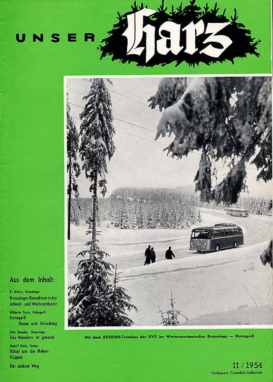 Titelbild: Mit dem BÜSING-Trambus der KVG im Winterparadies Braunlage - Hohegeiß | Link | 1954/11, S.1 | |