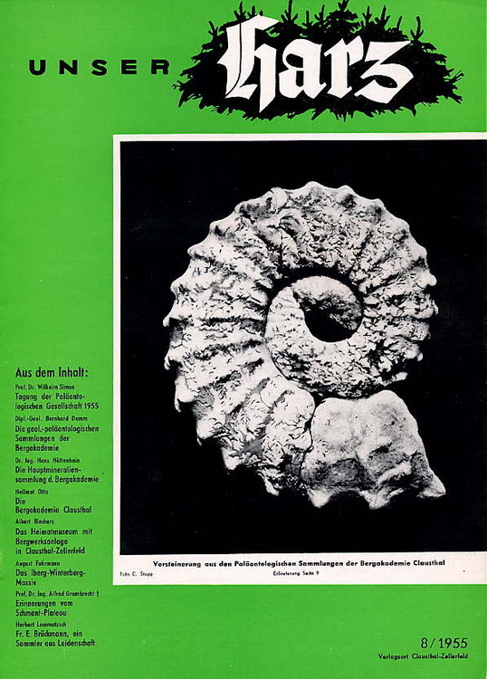 Stopp. C. | Titelbild: Versteinerung aus den Paläontologischen Sammlungen der Bergakademie Clausthal | Link | 1955/08, S.1 |