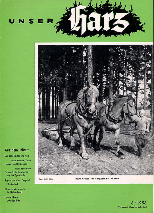 Klein | Titelbild: Beim Rücken von Langholz bei Altenau | Link | 1956/06, S.1 |