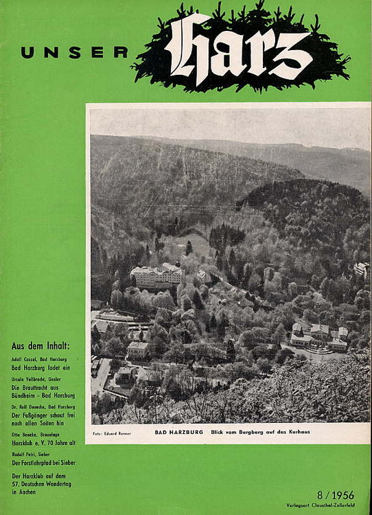 Renner, Eduard | Titelbild: Bad Harzburg - Blick vom Burgberg auf das Kurhaus | Link | 1956/08, S.1 |