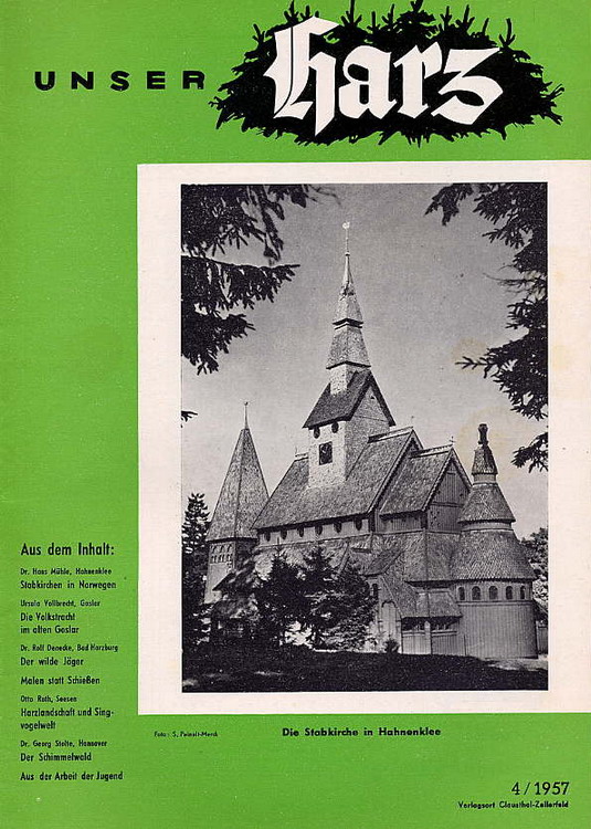 Peinelt-Merck, S. | Titelbild: Die Stabkirche in Hahneklee | Link | 1957/04, S.1 |