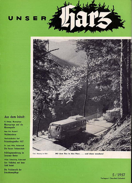 Titelbild: Mit dem Bus in den Harz … und dann wandern [Büssing] | Link | 1957/05, S.1 | |