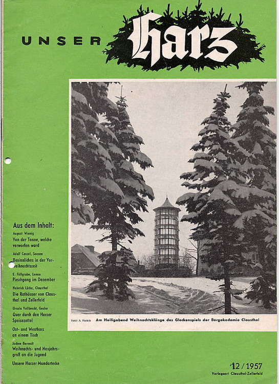 Humm, Albert | Titelbild: Am Heiligenabend Weinachtsklänge des Glockenspiels der Bergakademie Clausthal | Link | 1957/12, S.1 |