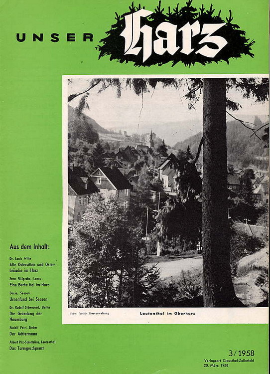Titelbild: Lautenthal im Oberharz | Link | 1958/03, S.1 | |
