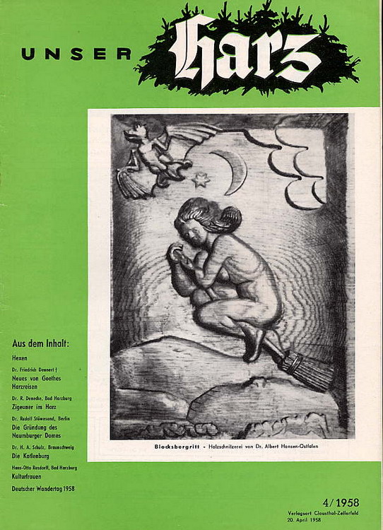 Titelbild: Blocksbergritt - Holzschnitzerei von Dr. Albert Hansen-Ostfalen | Link | 1958/04, S.1 | |