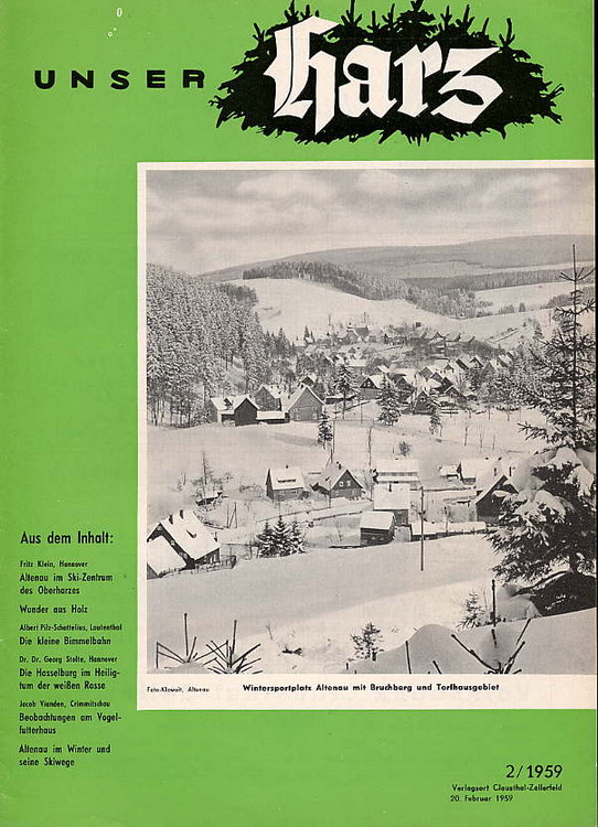 Kloweit | Titelbild: Wintersportplatz Altenau mit Bruchberg und Torfhausgebiet | Link | 1959/02, S.1 |
