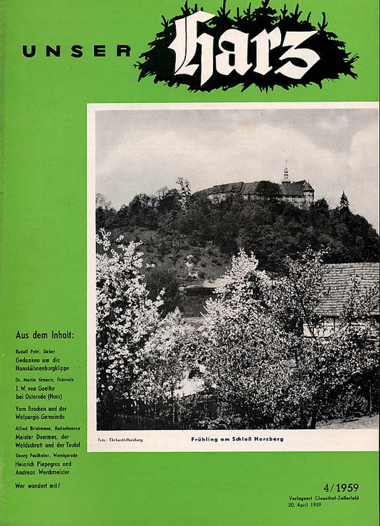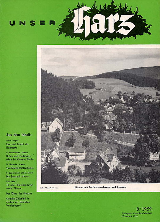 Ahrens, Herbert | Titelbild: Der Harzklub in Altenau | Link | 1959/10, S.1 |