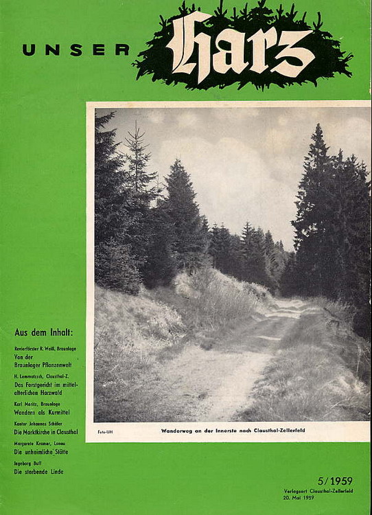Titelbild: Wanderweg an der Innersten nach Clausthal-Zellerfeld | Link | 1959/05, S.1 | |