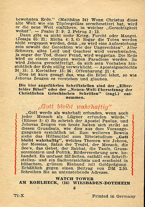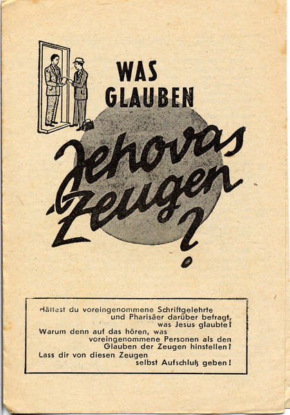 Was glauben Jehovas Zeugen? km 05.1954, S.3 farbig siehe 1954
