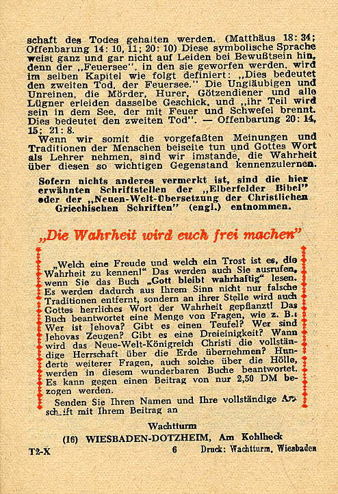 Rückseite: Angebot: „Die Wahrheit wird euch frei machen” - DM 2.50