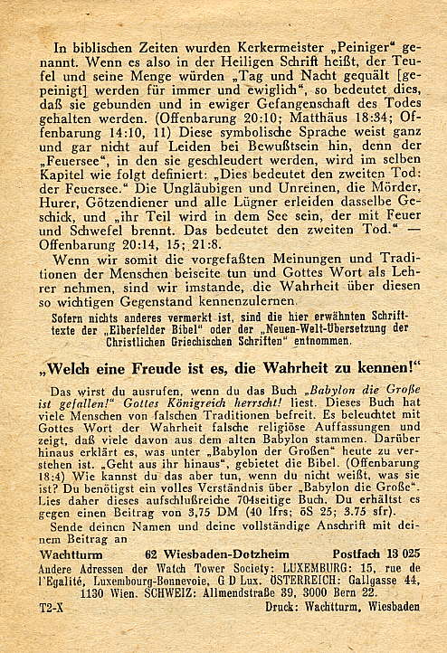 Rückseite: Angebot: „Babylon die Große ist gefallen!” - DM 3,75