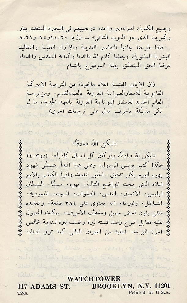 WATCHTOWER ADAMS ST. BROOKLYN, N.Y. 11201 T2-A Printed in U.S.A.